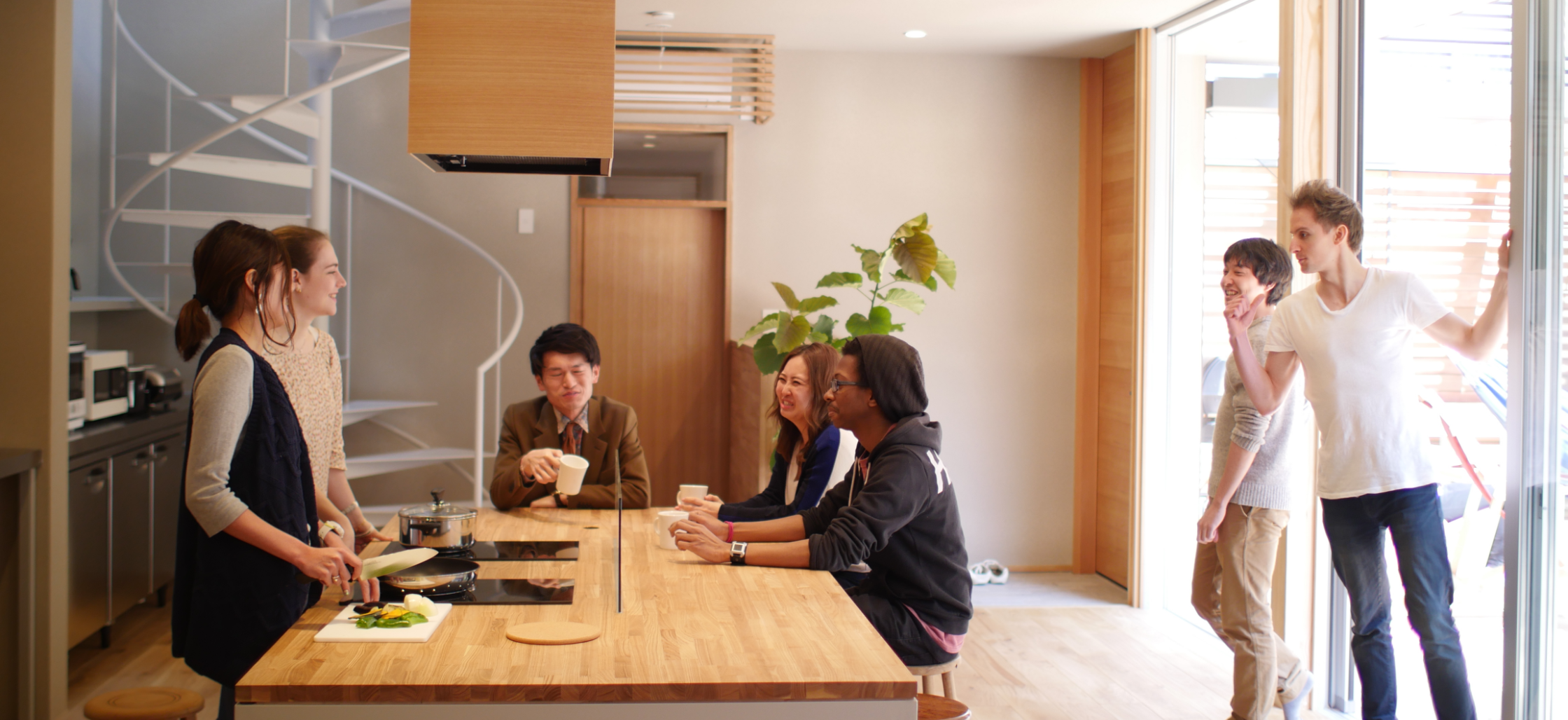 留学に来ている「外国人」と、外国に関心のある「日本人」に「保証人や高い初期費用なく入居でき、国際交流ができる住環境」を提供しています。共同生活を通じて家族のようなコミュニティを築いていく中で、国を越えた人と人の相互理解が育まれます。