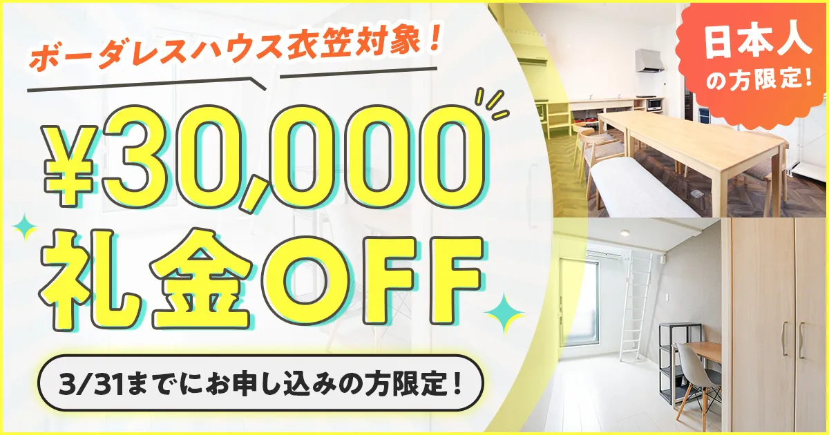 最低滞在期間は1か月となります。 - 初期費用には何が含まれますか?ボーダレスハウス 日本礼金30,000円、クリーニング費15,000円、初月の賃料及び水道光熱費を、お申し込み後3営業日以内にいただいております。お布団のレンタルをご希望の方は、初回のみレンタル費用12,000円が追加されます。(布団セットには、マットレスパッド、シーツ、掛け布団、掛け布団カバー、枕、枕カバー、ブランケットが含まれます。)