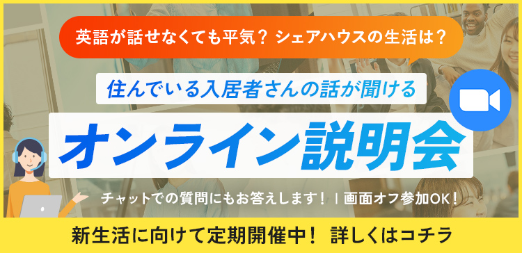 ボーダレスハウスのように、日本人と外国人の入居者が50:50の比率になるよう運営されているハウスもあり、日常の中で自然と英語に触れたり、海外の価値観に出会える環境が整っています。