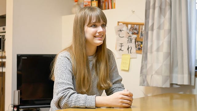 8時に起き、9時半から13時まで授業、バイトのある日はそのあと22時まで働いて、23時頃帰ります。帰ると大抵みなリビングにいます。語学学校に通って気がついたんですが、漢字は全然ダメなのに話すことはできるのはボーダレスハウスに住んでいるおかげかなって思います。自分で話したいとか、これだけは伝えたいということがいっぱいあるので日本語を頑張っています。ここでできた日本人の友だちと、最初は英語とのミックスで、覚えた言葉はどんどん日本語で話すようにしたのがすごく良かったな。たまに広島弁とかでも話します!日本語ってこんなにいっぱい言葉があるんだと思いました。