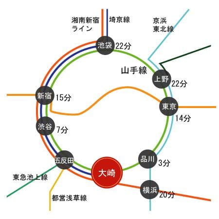 山手線だけでも魅力的ですが、他の路線もさらに都心へのアクセスを補い、住むにはとても便利な駅が大崎駅です。